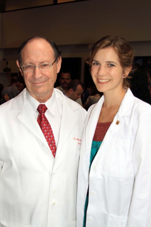 At the white coat ceremony, he spoke about medicine being about the people and how doctors should, first and foremost, be humanists. When I returned to my family after grabbing some refreshments, and I saw my dad talking to Dr. Rubinstein, my first thought was, Oh God, my dad is cornering the Dean! Now, I love my dad with my whole heart, and his gregariousness is certainly one of my favorite attributes, but I’m afraid I’ve never gotten over the adolescent embarrassment that accompanied any casual conversation between my dad and my teachers and coaches–and my dad was certainly never shy about approaching any of them. I hurried over to try to relieve the dean and, imagine my surprise, found that he seemed to be talking to my family of his own volition! Dude, the man practices what he preaches, to say the least.