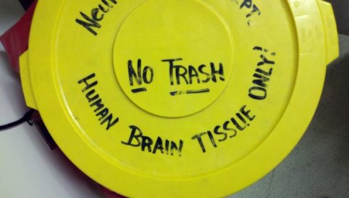 We’re wrapping up week eight of nine of Brain and Behavior. Recently, I’ve been studying in the empty classrooms in Stemmler (good light, lots of table space, distinct lack of chatty undergrads [no judgment]). Today I walked into a vacant one that looked like the perfect place to settle in and learn about cocaine. As I started to get my computer out, I noticed a faint, familiar odor, and I looked up to see a wall lined and stacked with containers of full and half brains (looks like the specimens from all the other rooms had been consolidated here)–didn’t we demolish them all before Spring Break? I think I might be ready to start Repro now.