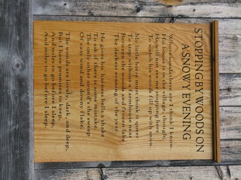 The wonderful thing about loose plans is that they allow for plenty of opportunity to be spontaneous (which, let’s be honest, I kind of suck at). Somewhere in New Hampshire we saw a sign for Robert Frost’s home…why not, right? Which brings me to my purpose: I know it’s trite; I know it’s over-used and over-quoted…I can’t help myself. To me, nothing better illustrates the peace of the season than Frost’s “Stopping By Woods on a Snowy Evening.” A placard hung outside of Frost’s barn: