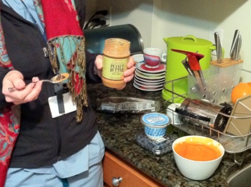 I came home from a long day a couple days ago, famished, and John found my choice of must-haves so perplexing, that he grabbed my phone to document: