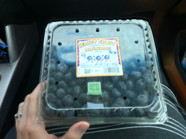 When John and I were driving home from the beach on Friday, we stopped in a Safeway that had a starbucks to get the token road trip lattes.  I saw a 2-pound container of blueberries on sale for $5.  Resisting the urge to drool and/or start eating them right there in the middle of the produce section, I made my way to the express line that was just opening up.  Two older gentlemen (friends, it seemed) with carts got there first.  The one with a portable oxygen tank wearing a nasal cannula looked at me, “That all you got??  Charles, let the woman go in front!  That all she got!”  I blushed, thanked him, and squeezed my way to the front of the line.  The cashier rang me up and I pulled out my wallet to pay, but I was interrupted by the same fella, “Oh honey, that’s on us!  You have a good weekend, mmmkay?”  I was touched and surprised, I just hope I did something to show my appreciation before I awkwardly waddled back over to John.  And they were the best flipping’ blueberries I’ve had all season!