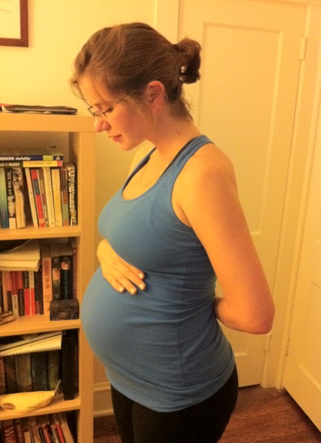 In the few minutes before this weekend’s prenatal yoga class got started, the moms-to-be were talking about what they and their partners were doing for Halloween costumes, how they were going to incorporate their bellies into something that was funny, cute, maybe a little crass without being overly offensive. As I thought out-loud, “I really hope I don’t make it to Halloween,” (I would be at 42 weeks…pretty sure I would beg for induction sometime before then) I looked around the room. I am, officially, the “most pregnant” woman in my yoga class. What happened to all the 38- and 39-weekers who were kicking it this summer? (Yes, of course they delivered by now…but weren’t there some others in-between?)