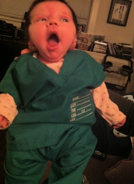 Aurelia had a blast in her personalized scrubs, just like her Dad’s. Thanks so much to her yaya aunts! Apologies for her looking a little drunk and pixilated due to postprandial state and poor lighting.