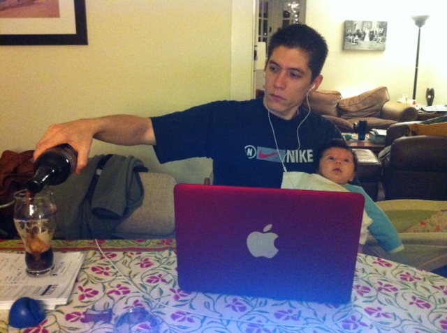 When you have friends with kids older than your own, it’s hard not to constantly be looking forward, excited for the day when she too will be able to reach her arms up toward you with desire and anticipation–hell, right now I’m eager for the day she’ll have enough muscle control to stop slapping herself in the face. But that’s a problem I’ve had in most/all walks of life: looking ahead instead of appreciating the now. So some of the resounding advice I’ve received recently has certainly struck a chord with me: appreciate the portability of the two-and-a-half-month-old child.
