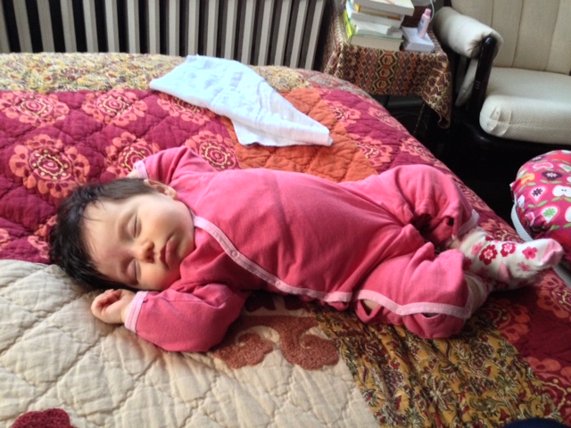 A few hours (okay, minutes) later, she was no worse for wear, albeit a bit cranky and sleepy.  An upper respiratory infection on top of things did not help.  It’s a little sad/cute when an infant can’t blow her snotty nose; and the suction thing-y totally traumatizes her.  But the gurgly noise she makes when she giggles is pretty adorable.  Definitely a day to curl up in bed: