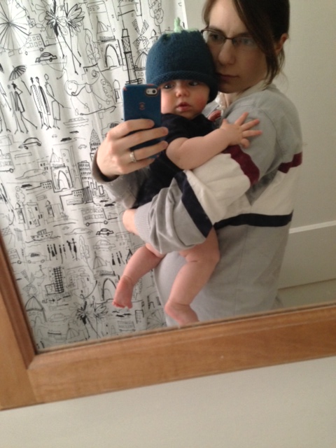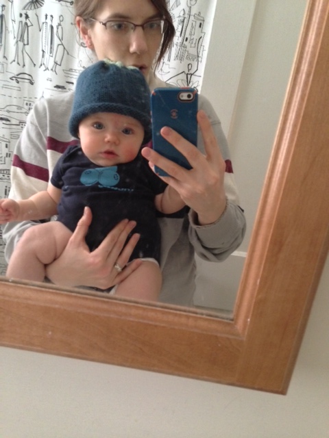 Not the greatest pictures of our squirmy girl (and if that is going to be our only mirror in the house, I know I need to clean it), but I had to get some documentation of our blueberry before I can no longer stretch the cotton over her belly.