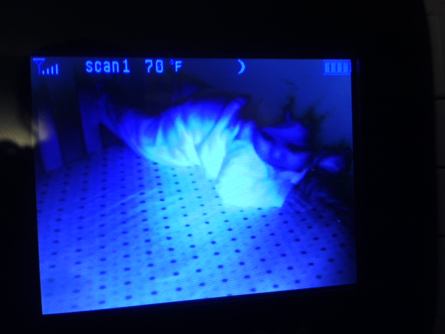 It’s times like these when a baby monitor with infrared night vision (a wonderful gift from my Doctoring group–thank you!!) is a truly brilliant thing: