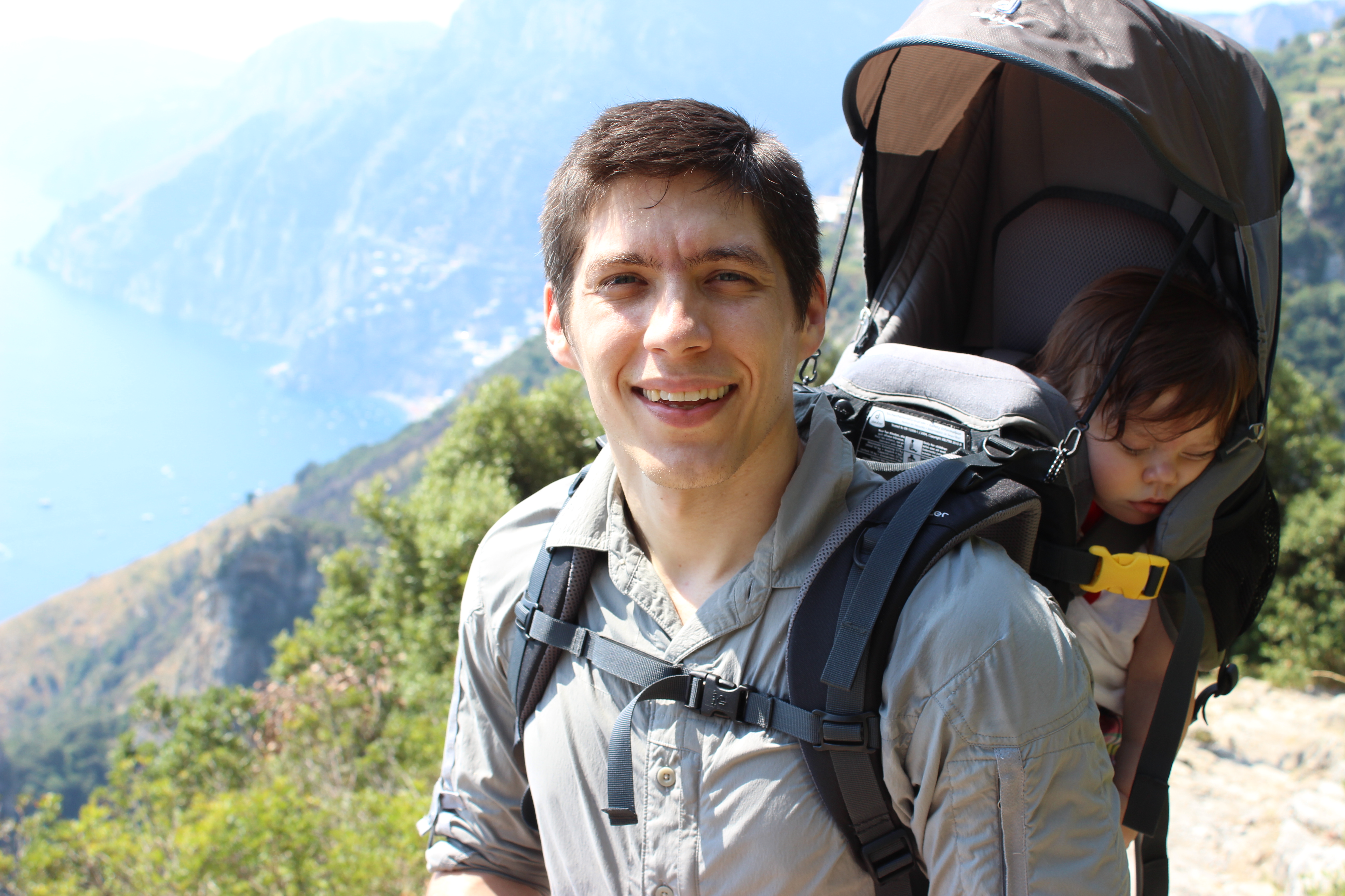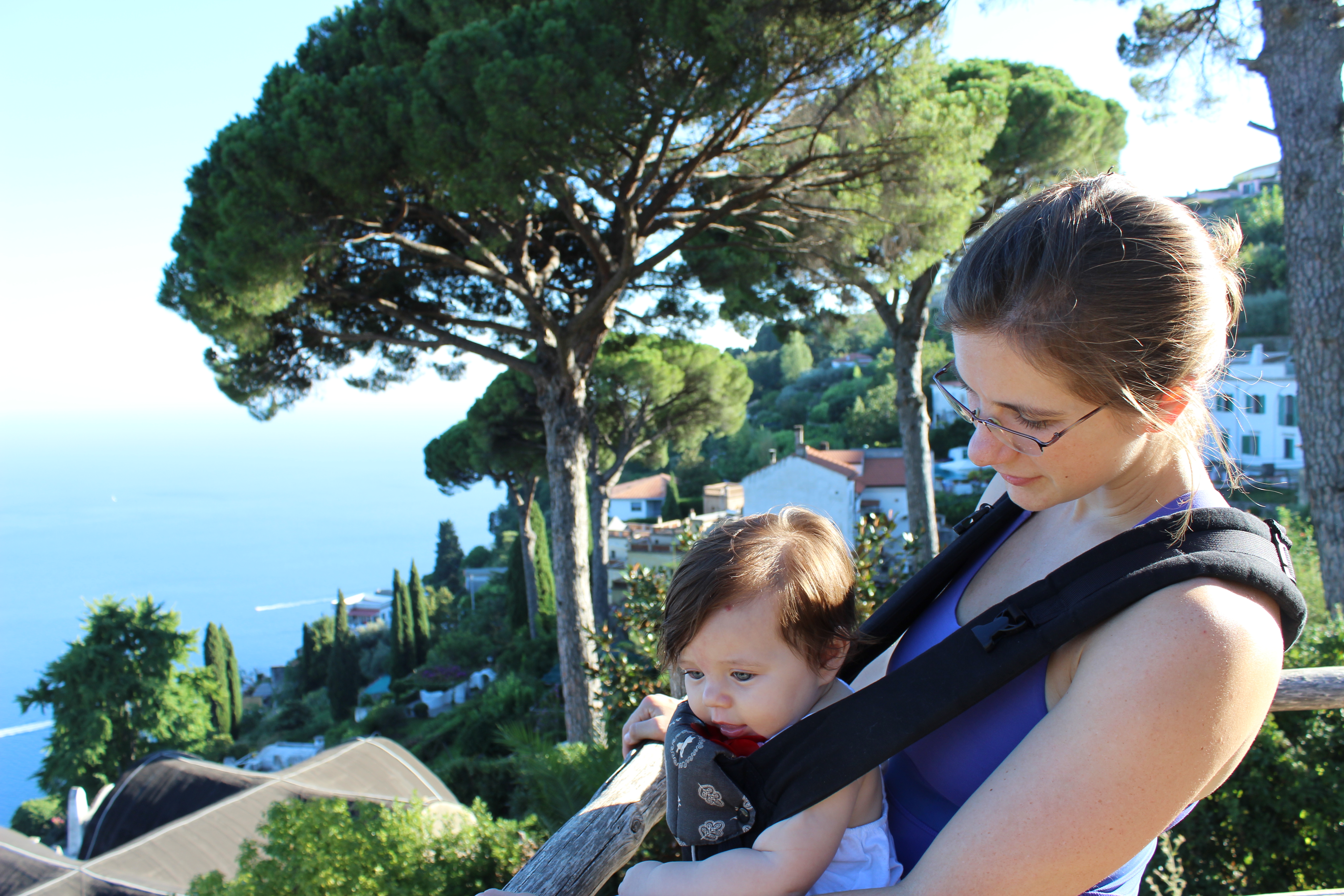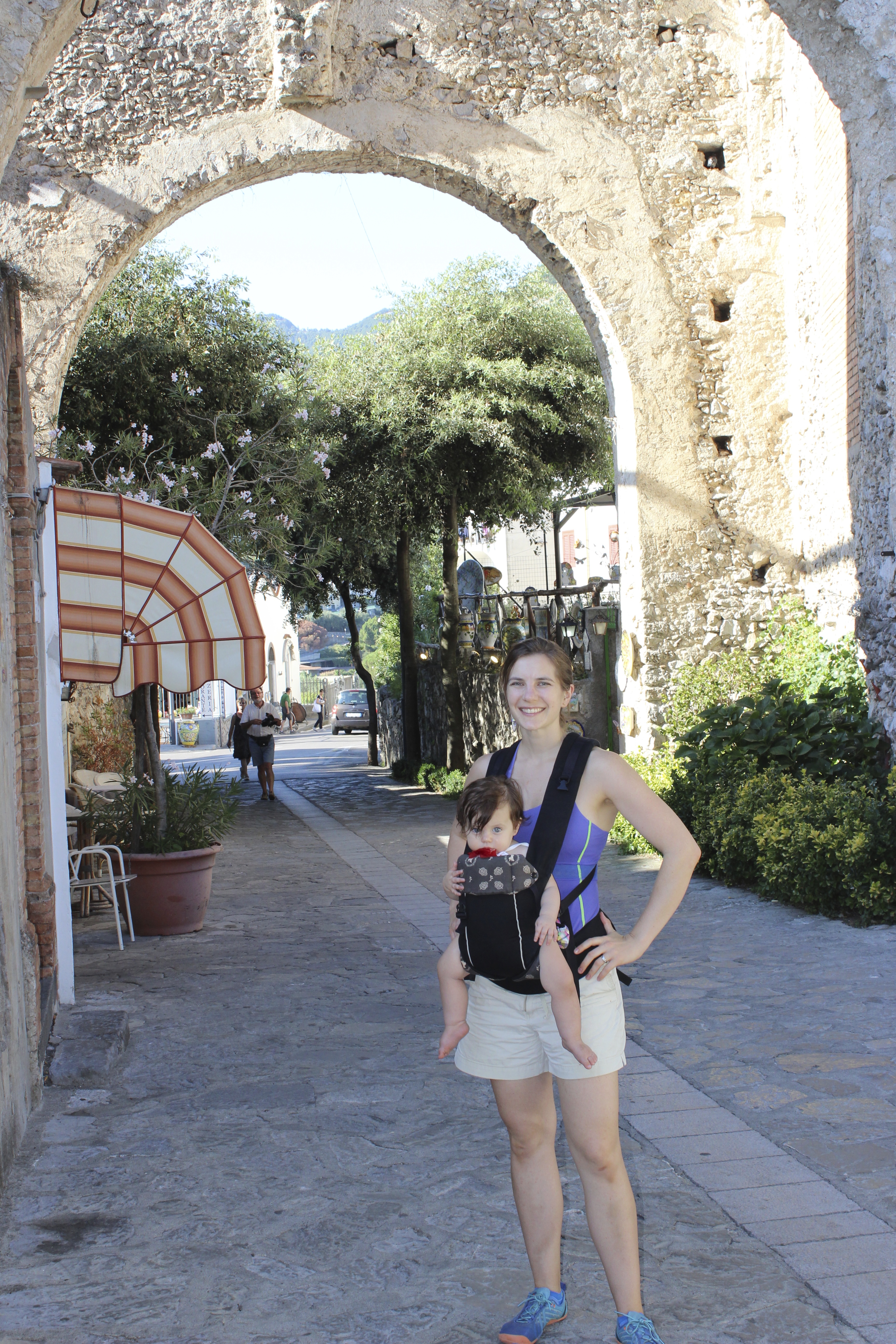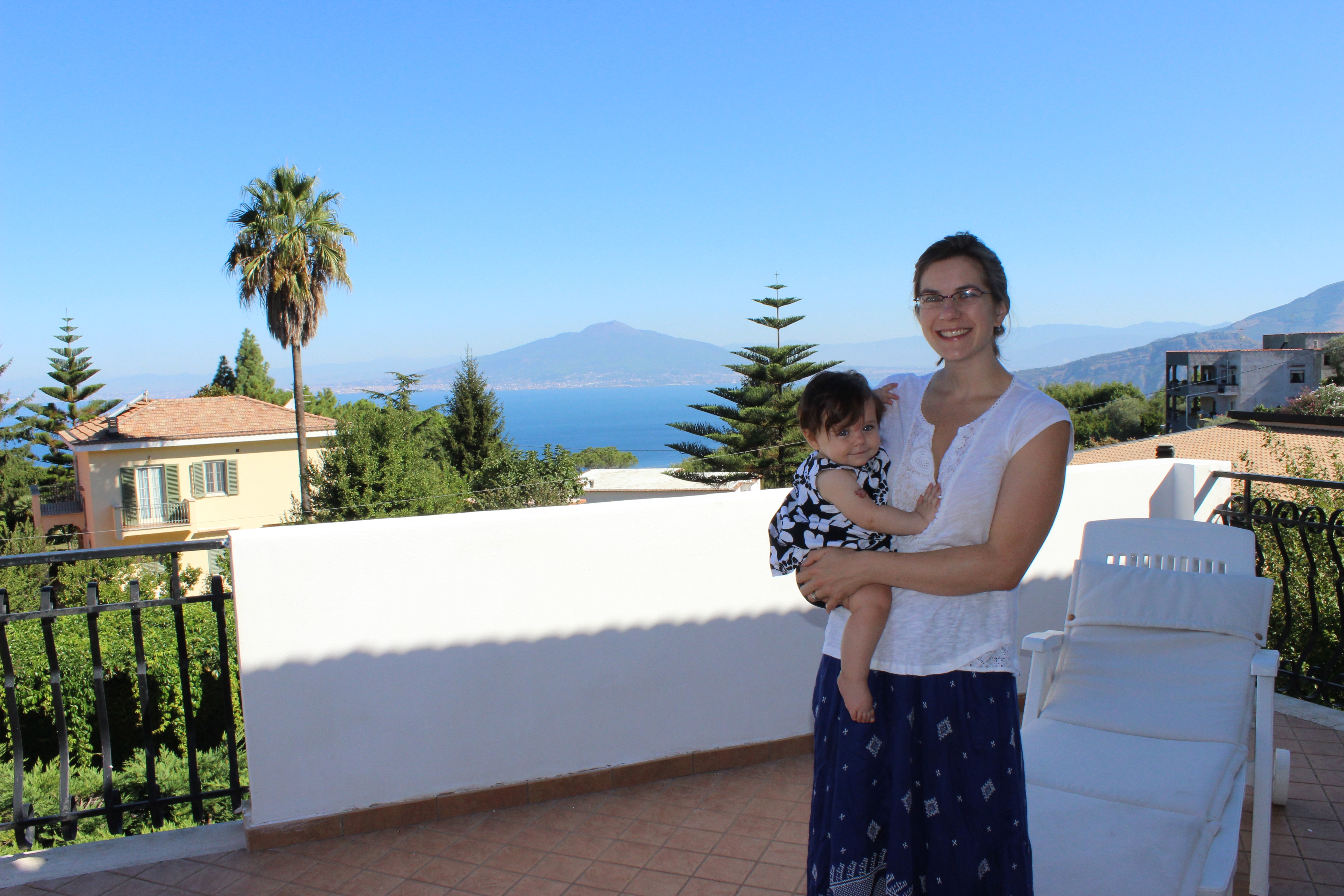 We couldn’t complain about the almost four-hour nap Ari took in the car between Pompeii and Val d’Orchia, but the last 45 minutes, once we got off the highway and she finally woke up, were miserable. After trying to sooth her, sing to her, even tempt her with treats, all the while she screamed and writhed against the straps of her carseat, I finally released her and held her for the rest of the trip. There wasn’t another soul on the back country roads, but I was still nervous that a tire striking a rock at just the right angle might create a collision between our heads and the window–I made John drive painfully slowly. We needed exact coordinates to find Angela and Olimpia’s “farm”, a few kilometers up an unmarked, dirt road. And when we thought we were surely lost in the mountains, with night descending, John just got out of the car to look for the farm on foot, quicker at that point than our trusty rental could dare. Well worth it all: