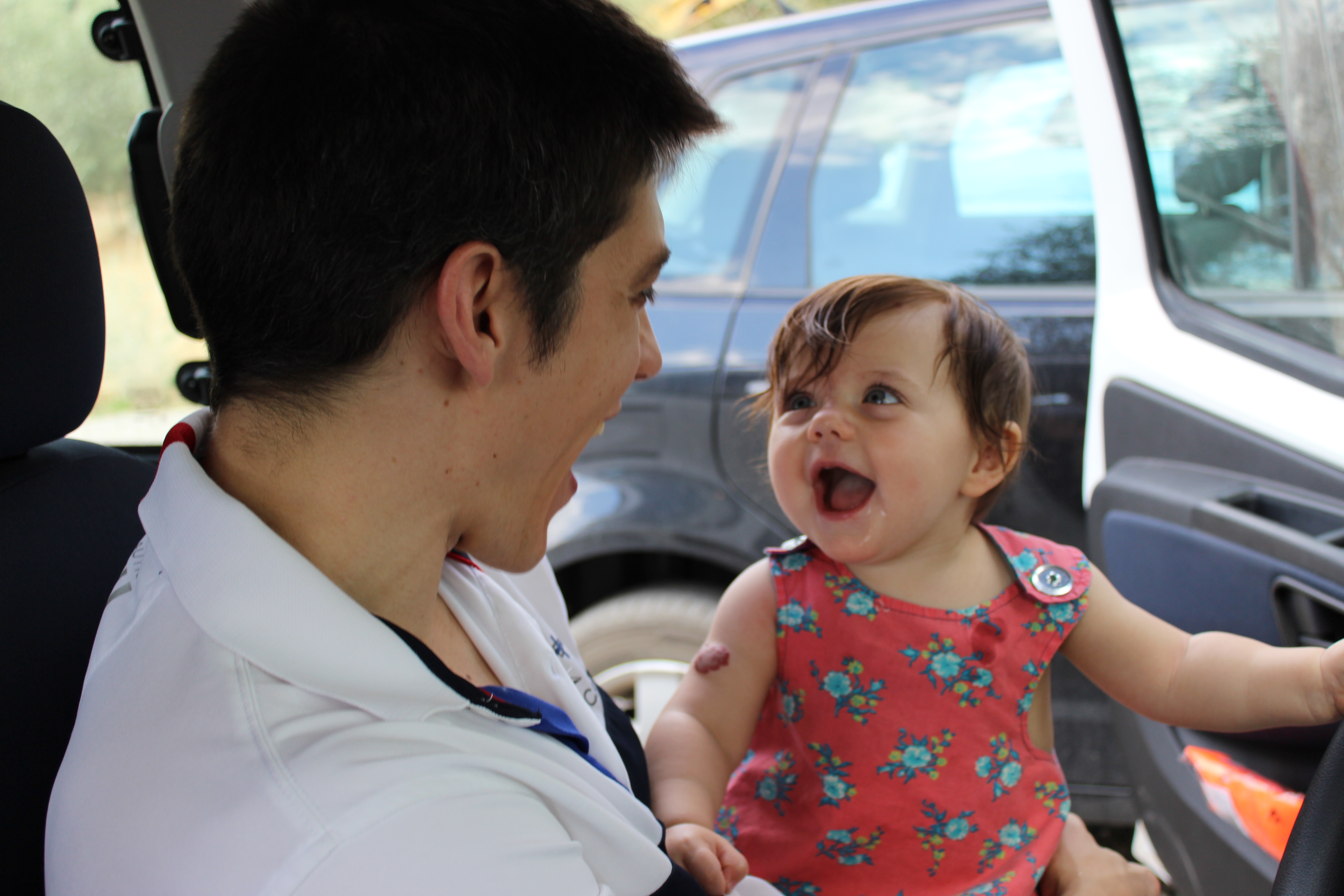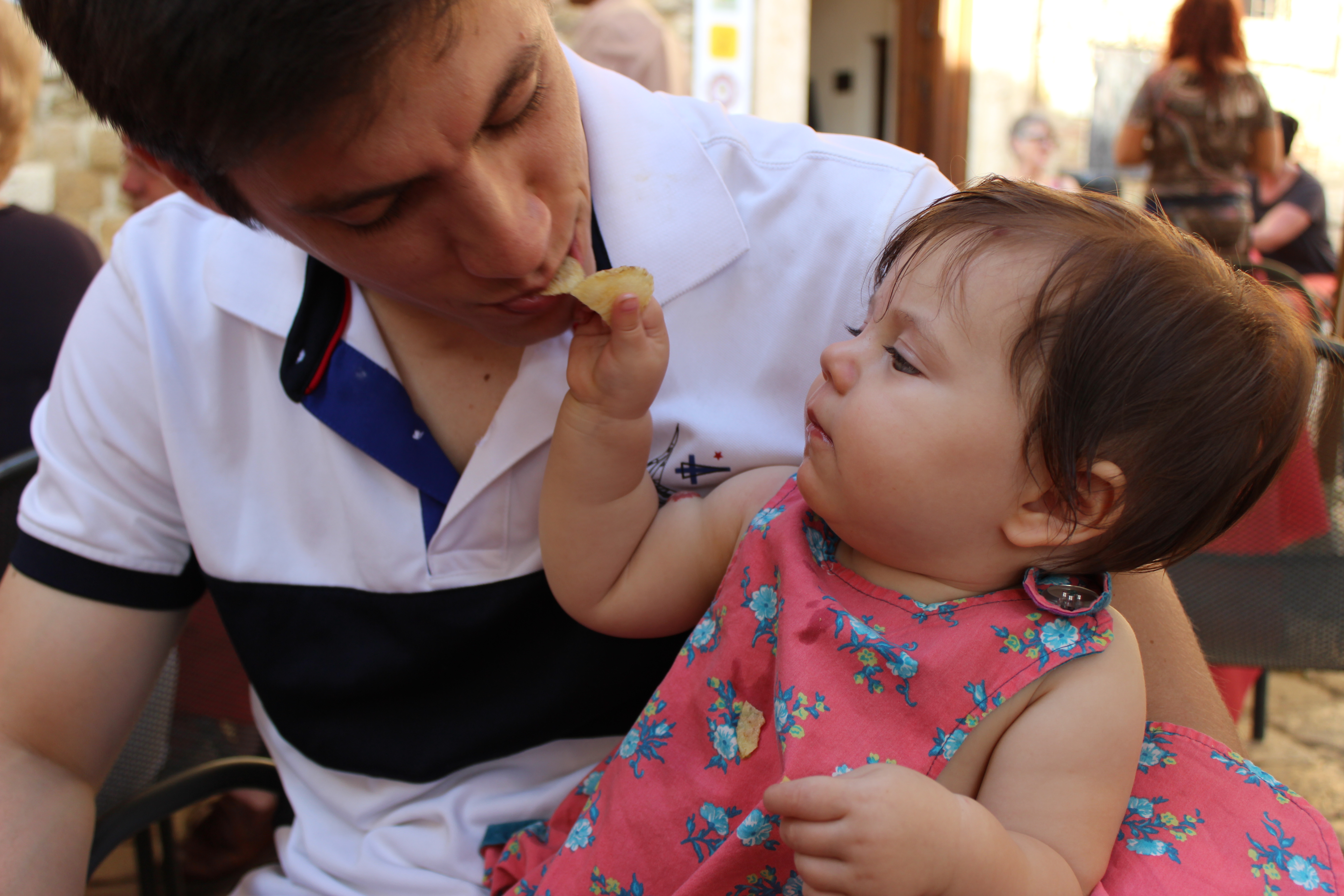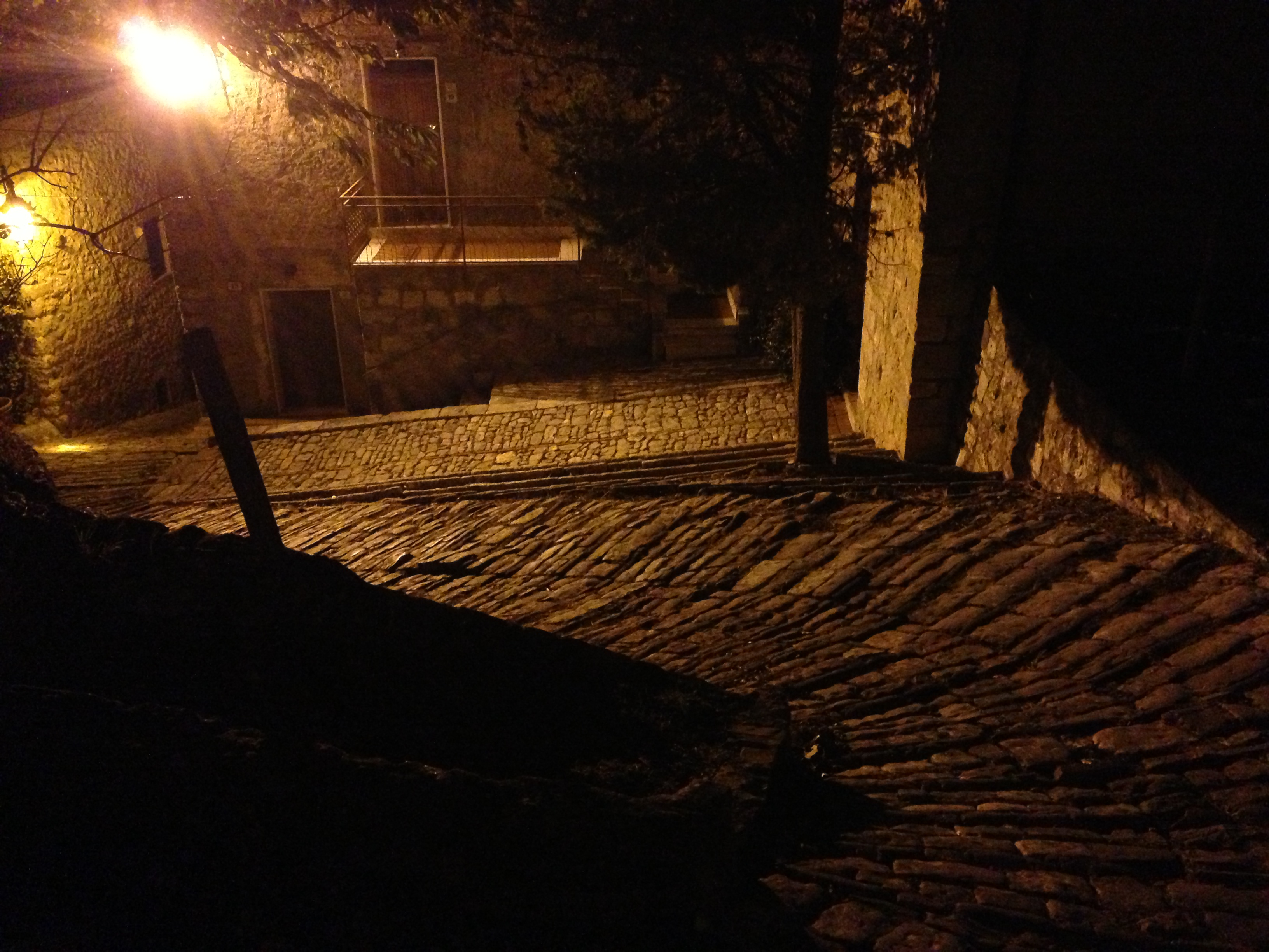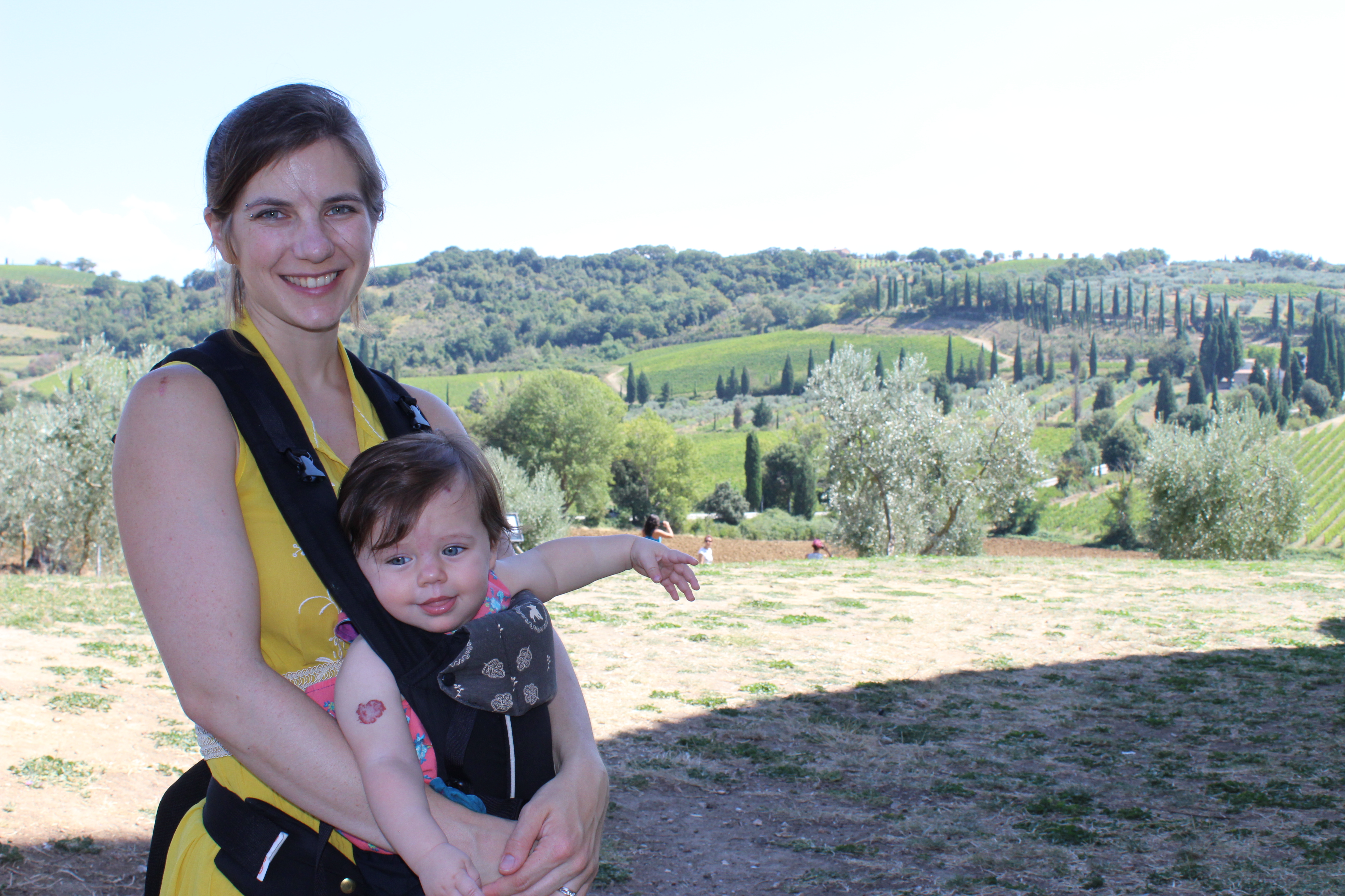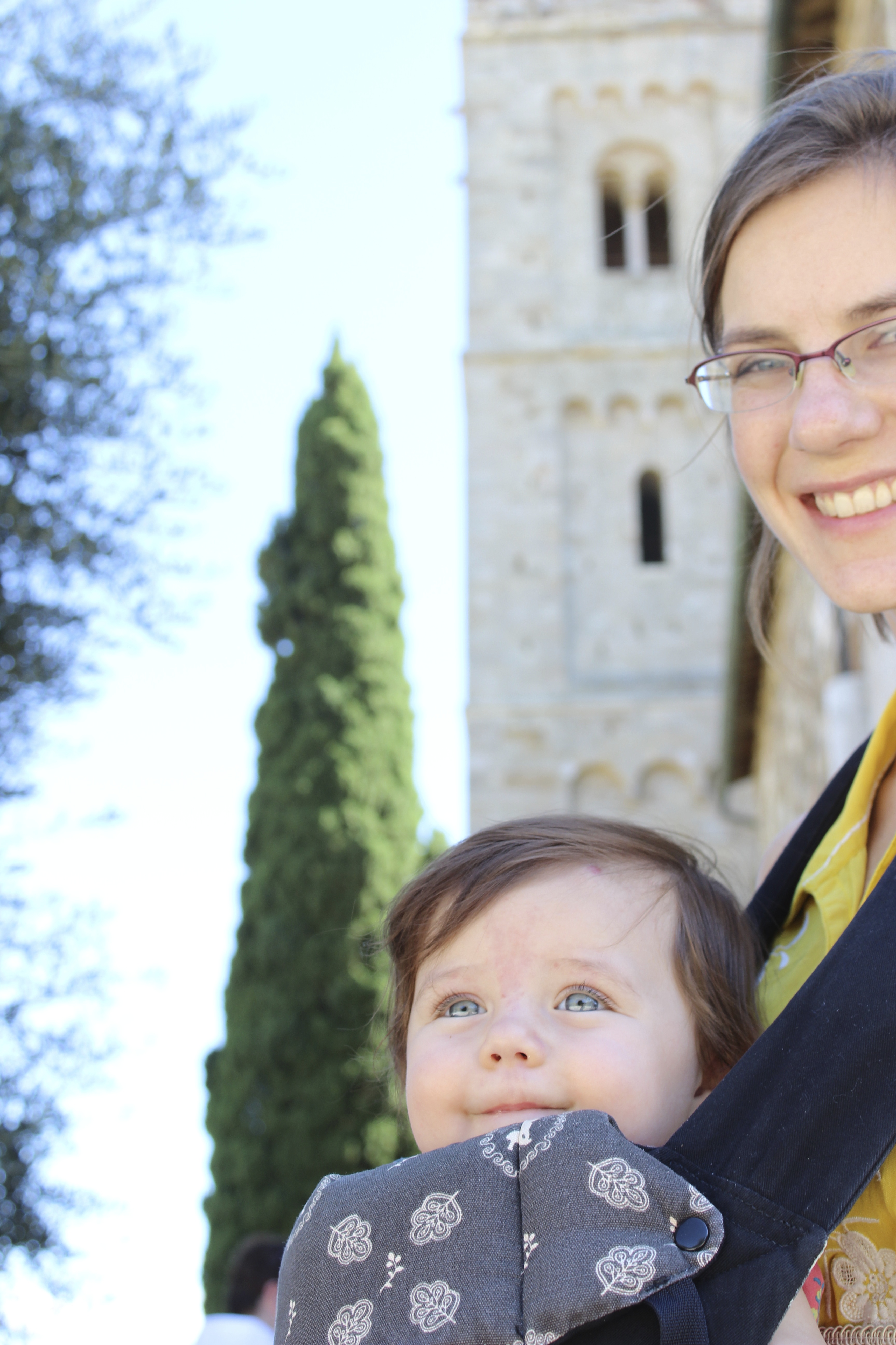 We couldn’t complain about the almost four-hour nap Ari took in the car between Pompeii and Val d’Orchia, but the last 45 minutes, once we got off the highway and she finally woke up, were miserable. After trying to sooth her, sing to her, even tempt her with treats, all the while she screamed and writhed against the straps of her carseat, I finally released her and held her for the rest of the trip. There wasn’t another soul on the back country roads, but I was still nervous that a tire striking a rock at just the right angle might create a collision between our heads and the window–I made John drive painfully slowly. We needed exact coordinates to find Angela and Olimpia’s “farm”, a few kilometers up an unmarked, dirt road. And when we thought we were surely lost in the mountains, with night descending, John just got out of the car to look for the farm on foot, quicker at that point than our trusty rental could dare. Well worth it all:
