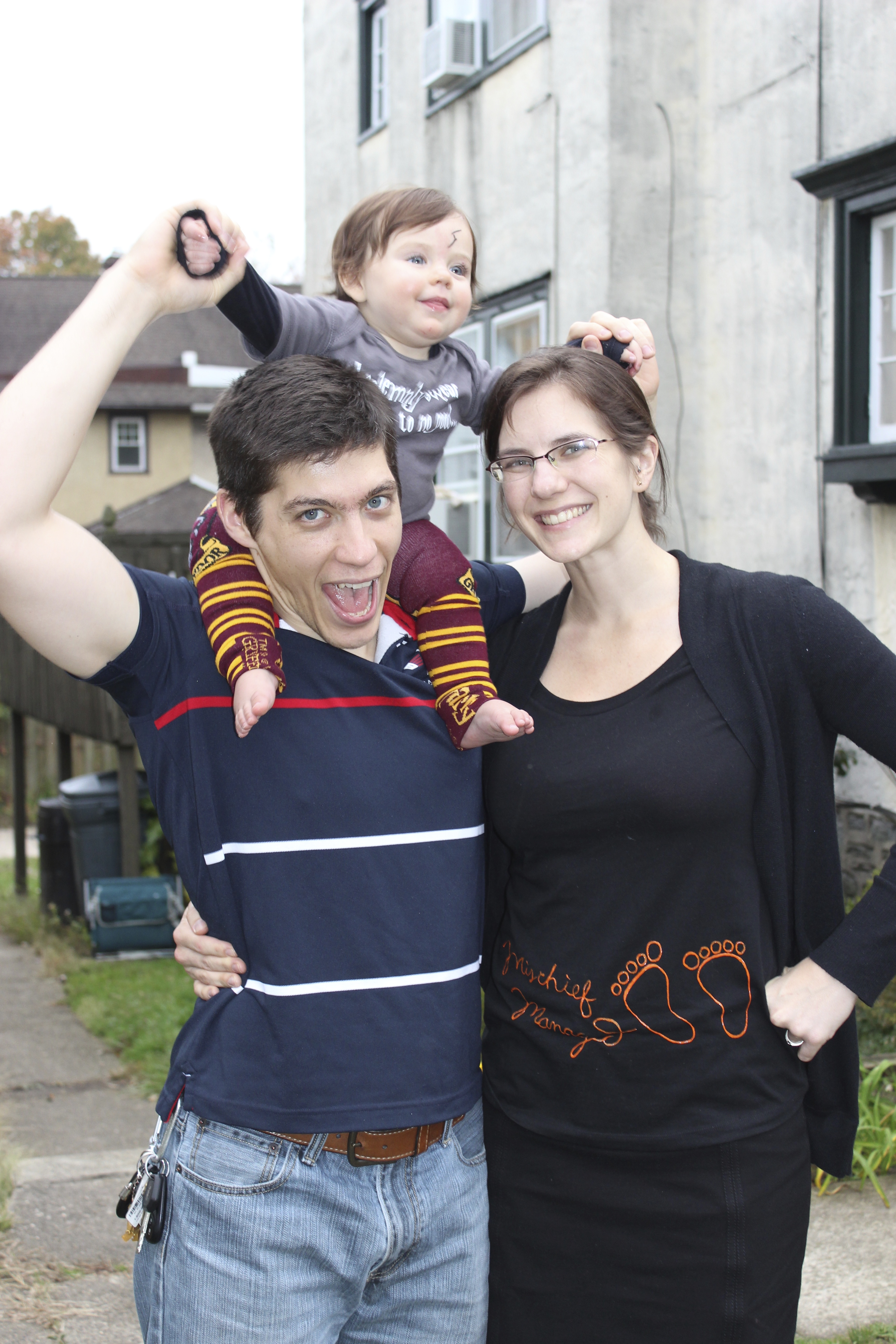 Our little rascal of a firstborn is turning out pretty okay, so we thought it could be awesome to have another kid in med school.  John, Aurelia, and I are over-the-moon happy, looking forward to welcoming a new little one to our pack in May 2014!  Photos above are from Halloween, as I was just entering my second trimester, and we were starting to come out to close family and friends.