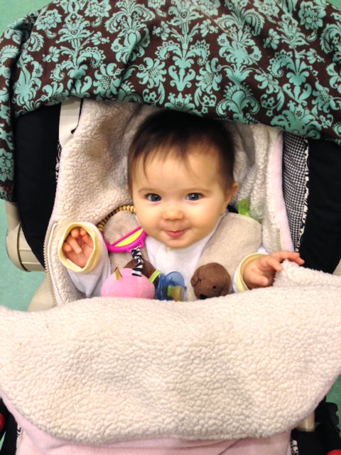 Oh, it was awful! John and I (mostly John) gave Ari two 5 mL syringes of the syrup at a time, with five or so minutes in between for an Elmo (“Elmo Calls” iPhone app = sanity saver) or “special snack” break. After about 30 mL, Ari was begging, “ALL DONE! ALL DONE!” After 40, she was shoving her blankie so far into her mouth so as to try to block any possible point of entry.