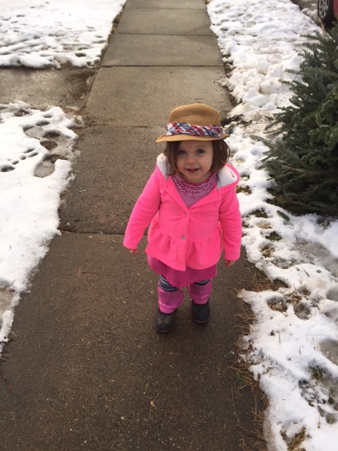 Girl after my own heart, willing summer to happen by insisting on wearing her beloved fedora and the thinnest excuse for a jacket imaginable: